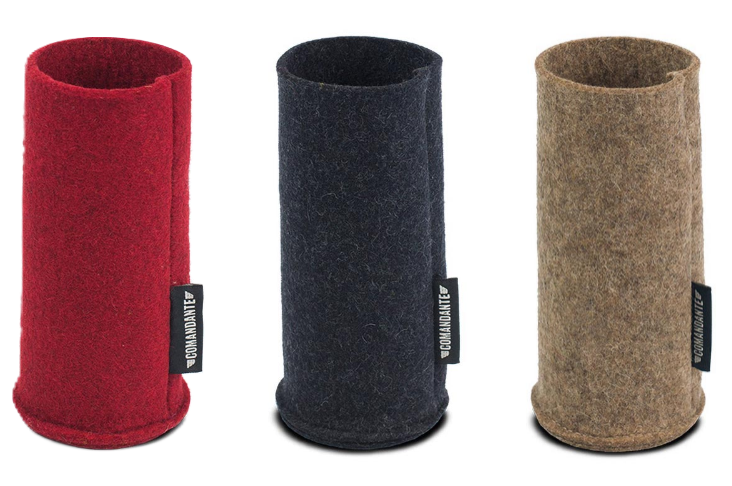 Фетровый фирменный чехол для хранения и перевозки кофемолки Comandante. Не занимает много места, удобен. Надёжно защищает тело кофемолки и банку от повреждений.