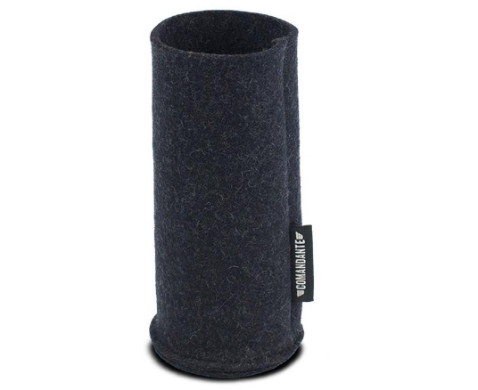 Фетровый фирменный чехол для хранения и перевозки кофемолки Comandante. Не занимает много места, удобен. Надёжно защищает тело кофемолки и банку от повреждений.